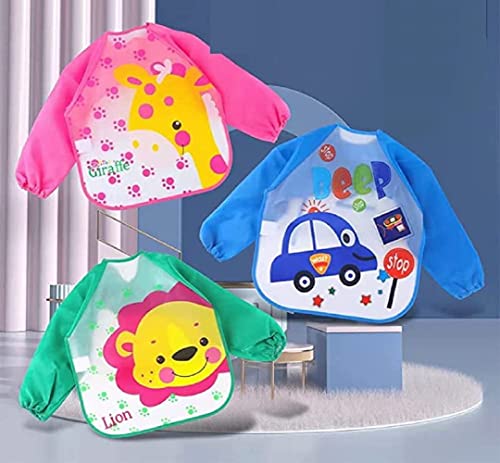 BABYGO - مريلة طعام مقاومة للماء باكمام قابلة للغسل للاطفال البيبي والرضع من بيبي جو(مجموعة من قطعتين)، لون عشوائي، متعددة الالوان, متعدد