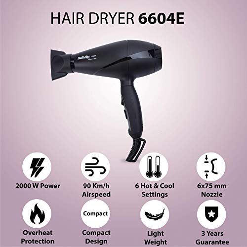 BaByliss - مجفف الشعر لي برو لايت 2000 واط من بايليس- اسود 6604E، بيبي ليس،
