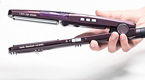 BaByliss - مكواة فرد الشعر اي برو 230 بتقنية البخار والواح سيراميك مطلية بالتيتانيوم مناسبة للشعر الجاف والمبلل ST395E - مع شعر صغيرة من بيبي ليس متعدد الألوان