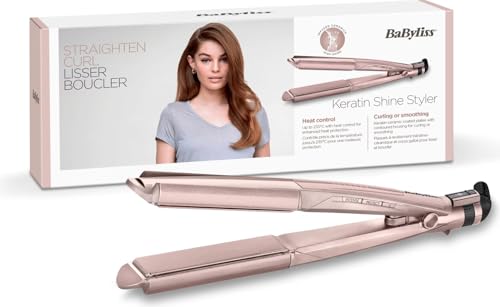 BaByliss - مكواة فرد الشعر 2 في 1 كيراتين شاين من بيبي ليس، لون بينك، سيراميك، زهري