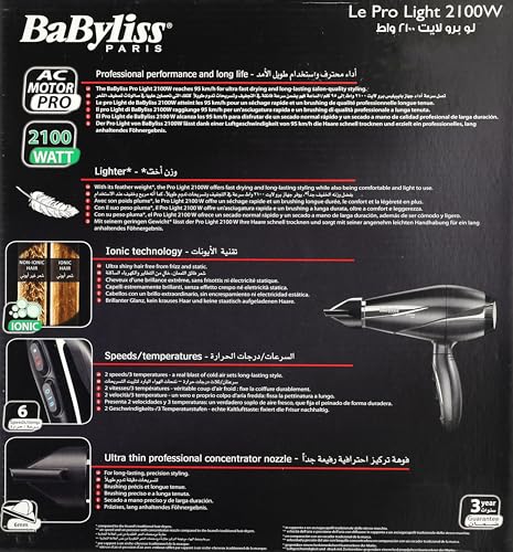 Babyliss - مجفف الشعر من بيبي ليس - لي برو لايت 2100 وات، أسود، 2100.0 واط