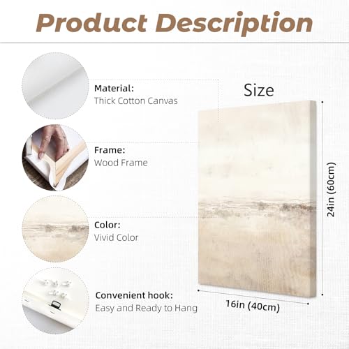 Baccone - طقم لوحات جدارية يتكون من 3 قطع، مطبوعات كانفس بتصميم مجرد بوهيمي وحديث لتزيين الجدران بأسلوب مينيماليست لغرف المعيشة أو النوم من باكون، بمقاس 40 × 60 سم بإطار، بيج