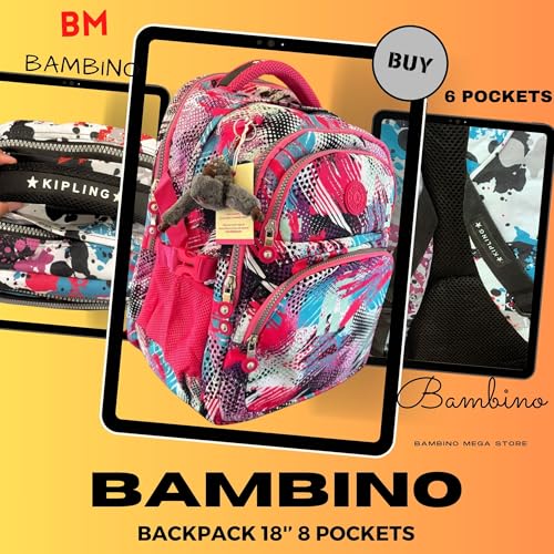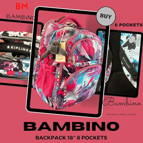 Generic - شنطة ظهر كيبلين للمدرسة والجامعة - مقاس 18 انش مقاس 45 × 34 × 18 سم (زهري متعدد الالوان)