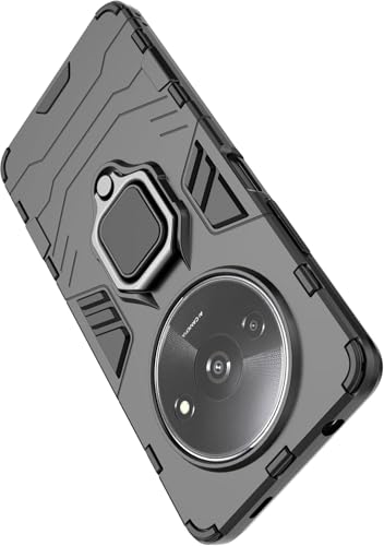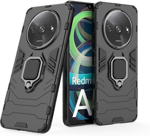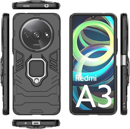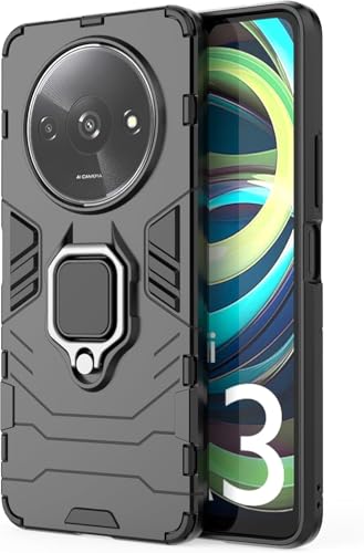 Generic - جراب خلفي مضاد للصدمات بتصميم عصري انسيابي مزود بحلقة معدنية، متوافق مع ريدمي A3 4G (اسود)، سيليكون