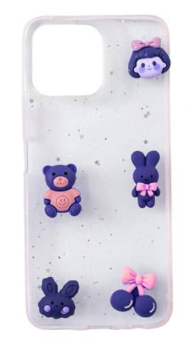 Generic - جراب خلفي متوافق مع هونر X8 4G ظهر صلب شفاف للبنات حواف من السيليكون الناعم والالعاب الصغيرة - ازرق كحلي