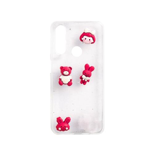Generic - جراب خلفي متوافق مع هواوي Y9 برايم 2019، ظهر صلب شفاف للبنات مع حواف من السيليكون الناعم والالعاب الصغيرة - احمر