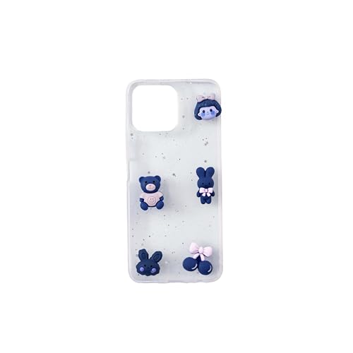 Generic - جراب حماية خلفي صلب شفاف مع حواف من السيليكون الناعم وألعاب صغيرة متوافق مع آيفون 14 برو ماكس للبنات، كحلي