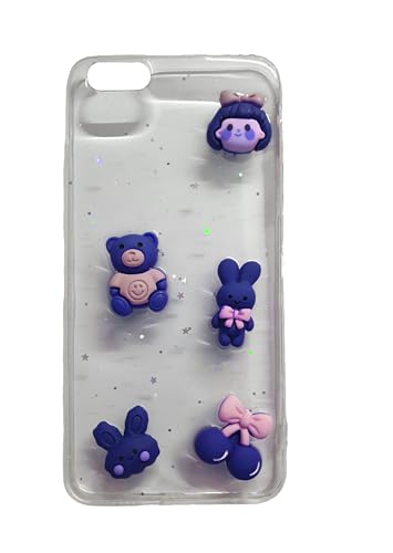 Generic - جراب خلفي متوافق مع ايفون 6 بلس - 6S ظهر صلب شفاف للبنات حواف من السيليكون الناعم والالعاب الصغيرة - ازرق داكن