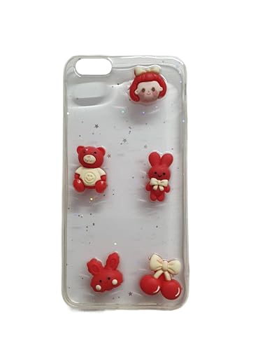Generic - جراب خلفي متوافق مع ايفون 6 بلس - 6S ظهر صلب شفاف للبنات حواف من السيليكون الناعم والالعاب الصغيرة - احمر