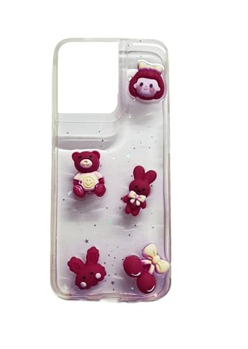 Generic - جراب حماية خلفي متوافق مع موبايل أوبو رينو 8 (شبكة الجيل الرابع 4G)، بظهر صلب شفاف للبنات مع حواف من السيليكون الناعم والألعاب الصغيرة، لون أحمر غامق