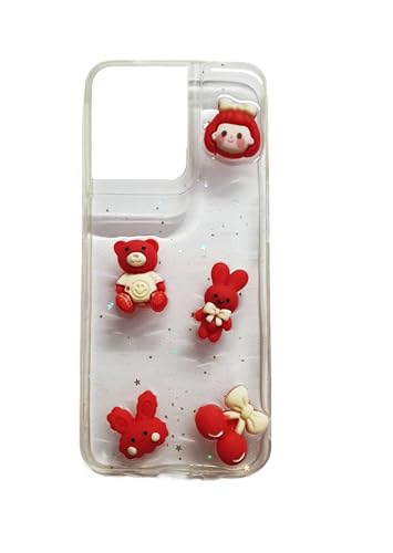 Generic - جراب حماية خلفي صلب شفاف، متوافق مع موبايل أوبو رينو 8 شبكة الجيل الرابع (4G)، مع حواف من السيليكون الناعم وألعاب صغيرة ملحقة بتصميم مناسب للبنات - لون أحمر