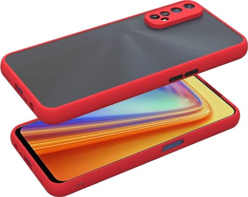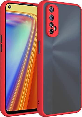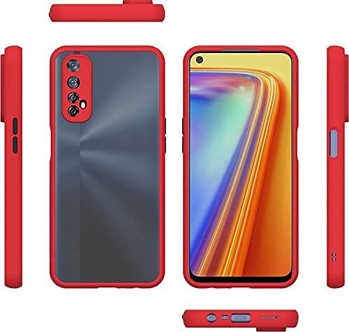 Generic - جراب حماية خلفي شبه شفاف بملمس ناعم مع حواف سيليكون ملونة وإطار كاميرا متوافق مع موبايل ريلمي 7 - أحمر