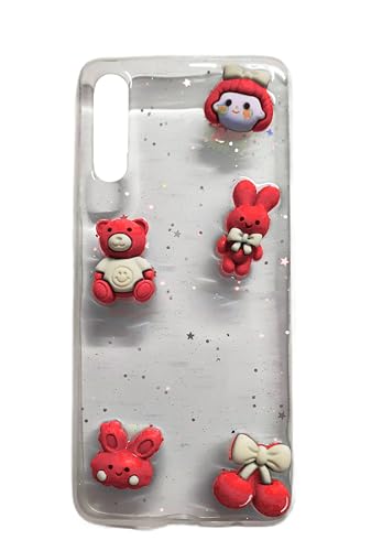 Generic - جراب حماية خلفي للبنات متوافق مع موبايل سامسونج A50 /A50S، ذو ظهر صلب شفاف وحواف ناعمة من السيليكون وألعاب صغيرة - أحمر