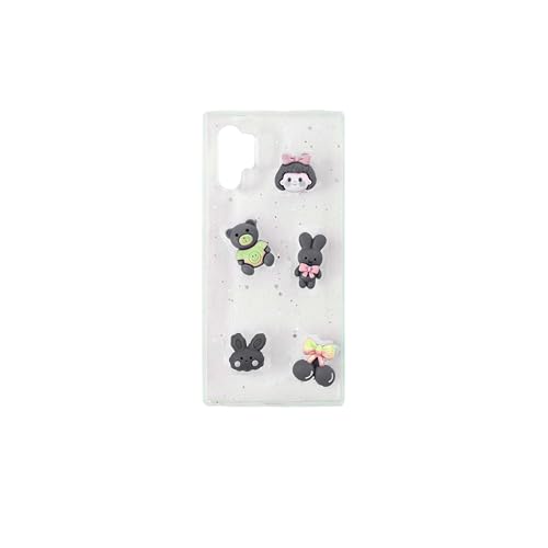 Generic - جراب حماية خلفي بجزء خلفي صلب شفاف مع حواف من السيليكون الناعم مزين بألعاب صغيرة للبنات متوافق مع موبايل سامسونج نوت 10 بلس، أسود