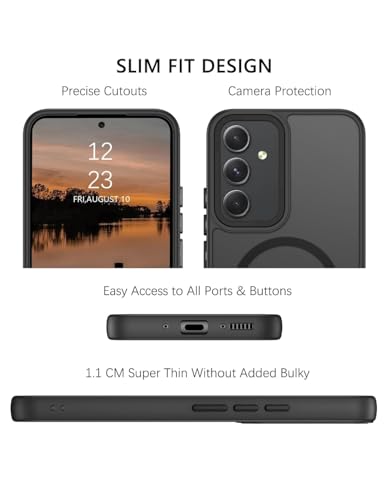 - جراب خلفي رفيع شفاف مطفي مضاد للصدمات والخدش لموبايل سامسونج جالاكسي A35 شبكة الجيل الخامس 5G (6.4 بوصة) (أسود).