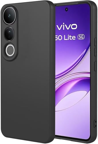 Generic - جراب خلفي سيليكون مع حماية للكاميرا ببطانة مايكروفايبر لموبايل فيفو V50 لايت شبكة الجيل الخامس 5G (لون أسود)