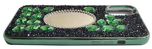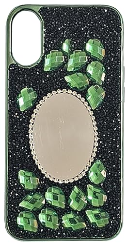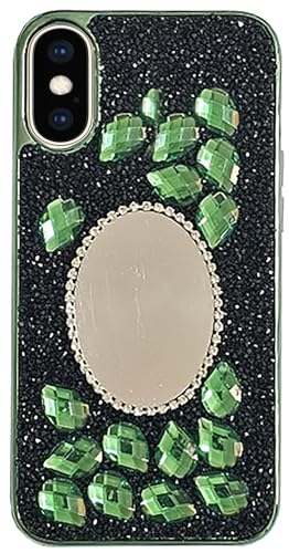 Generic - جراب حماية خلفي من السيليكون مضاد للصدمات بتصميم مرصع بالماس ومراية مع عالية للكاميرا للنساء والبنات الجميلات ومتوافق موبايل ايفون اكس اس ماكس 6.5 بوصة لون أخضر بلاستيك