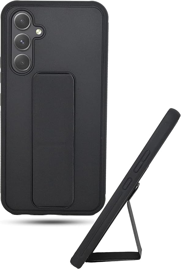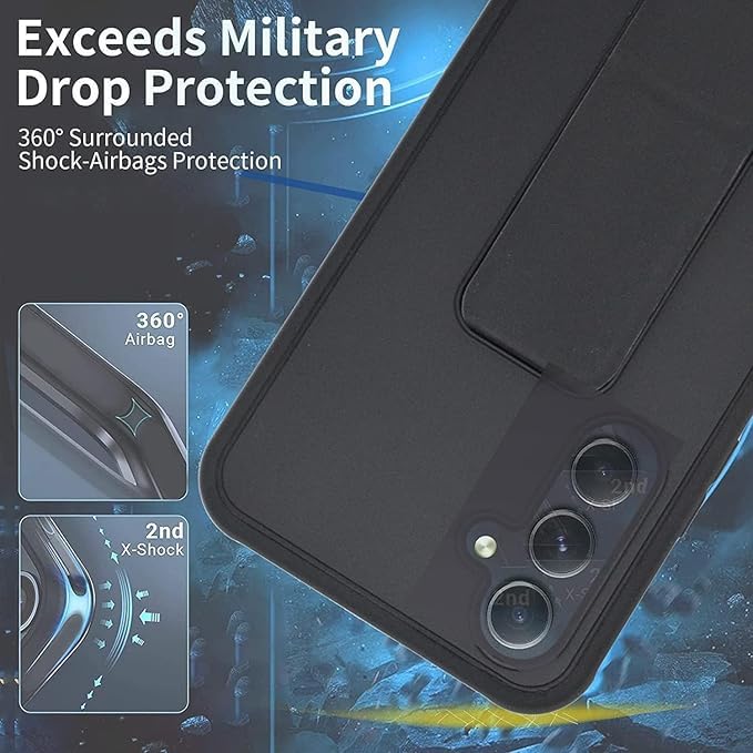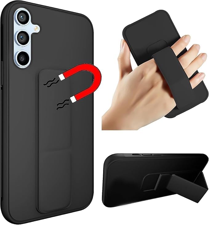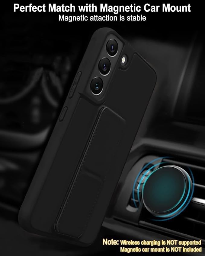 Generic - جراب خلفي بحامل مغناطيسي للسيارة من السيليكون الناعم مع مسند أفقي ورأسي وحزام معصم يوفر حماية كاملة ضد بصمات الأصابع لموبايل (سامسونج a54 S، أسود)