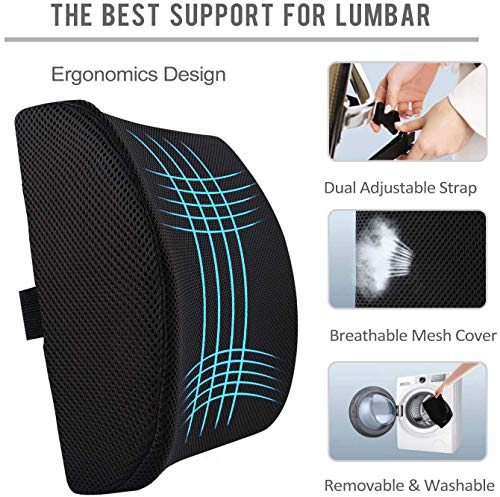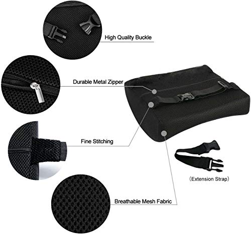 Generic - وسادة ميموي فوم خلفية بدعم لاسفل الظهر وغطاء شبكي ثلاثي الابعاد بمسامات للتهوية واحزمة قابلة للتعديل لكرسي المكتب ومقعد السيارة، اسود
