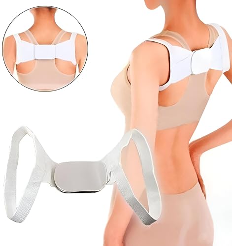 Generic - حزام دعامة وضع الجسد، مصحح خفيف الوزن وقابل للتعديل للأطفال والبالغين لتحسين محاذاة العمود الفقري بلون أبيض ناعم (قطعة واحدة)