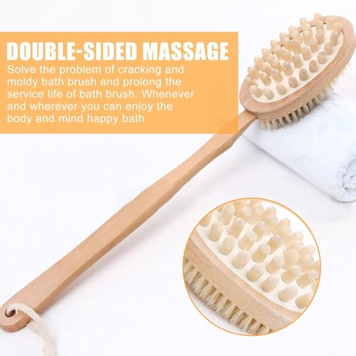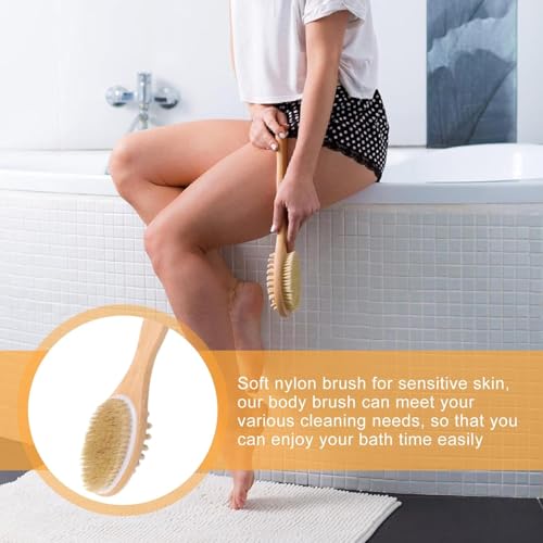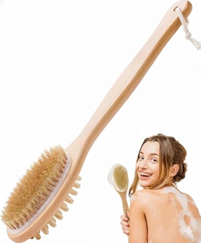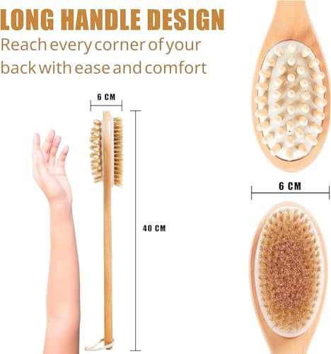 Generic - فرشاة تنظيف الظهر للاستحمام، فرشاة استحمام ناعمة 2 في 1 بمقبض طويل، فرشاة تقشير بشعيرات طبيعية، فرشاة استحمام 40 سم لتنظيف البشرة الجافة
