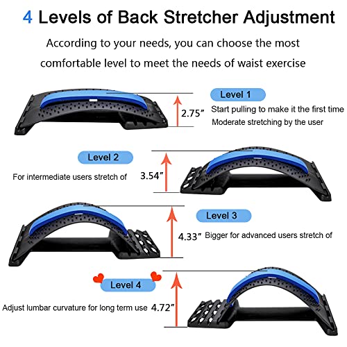 - 4 مستويات للتعديل - يحتوي جهاز تكسير الظهر على 4 مستويات من وظيفة التعديل، والتي يمكن تعديلها وفقًا لظروف التحمل الخاصة بك للحصول على التمدد والراحة المطلوبة. تساعد المرونة على الاسترخاء وتخفيف آلام العضلات وتحسين جودة نومك وزيادة مرونتك أيضًا. يمكنك استخدام أداة التقطيع الخلفية على الأرض أو ربطها بارتفاع مناسب على الكرسي لتدليك الظهر.