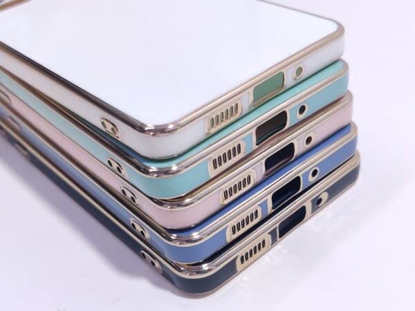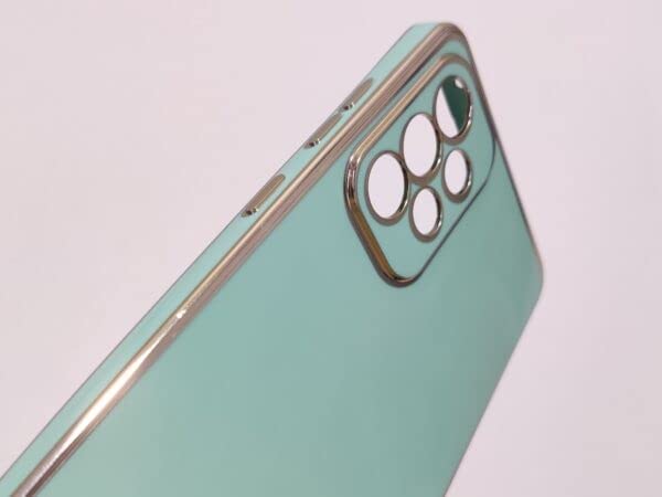 - جراب خلفي من البولي يوريثين الحراري لهاتف سامسونج A73 بحواف مرتفعة من الكروم الذهبي بملمس ناعم