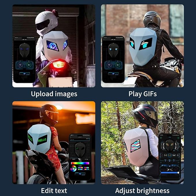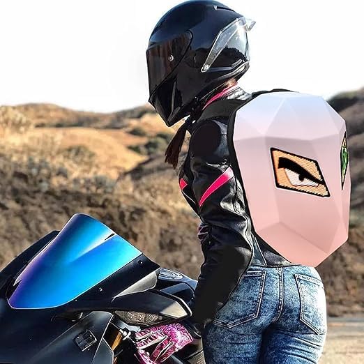 Generic - شنطة ظهر من الياف الكربون بهيكل صلب ثلاثي الابعاد مع عيون LED للدراجة النارية وشاشة رقمية قابلة للبرمجة ومقاومة للماء مع شاشة بي اي اكس قابلة للبرمجة - بينك
