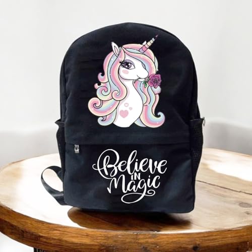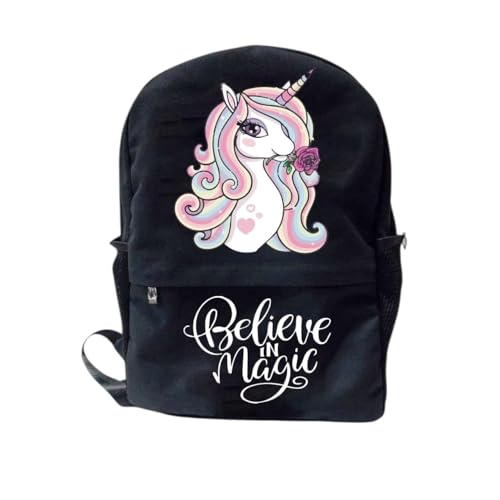Generic - شنطة ظهر مدرسية كبيرة، شنطة ظهر بنمط يونيكورن، 30 × 40 سم، مع جيبين، هدية للفتيات، هدايا للبنات، تصميم مخصص، صدق في السحر، نحن نطبع