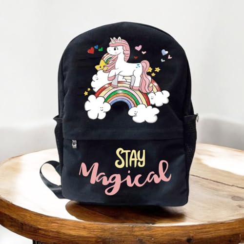 Generic - شنطة ظهر مدرسية كبيرة، شنطة ظهر بنمط يونيكورن، 30 × 40 سم، مع جيبين، هدية للفتيات، هدايا للبنات، تصميم مخصص، ابق سحري، نحن نطبع