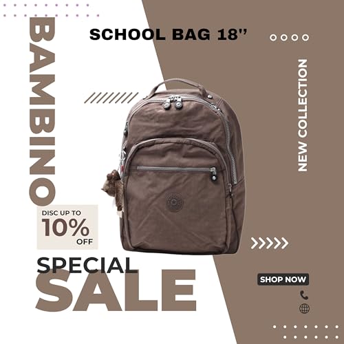 Generic - شنطة ظهر - مدرسية - للجنسين - مقاس 18 46×35×16 سم بني .