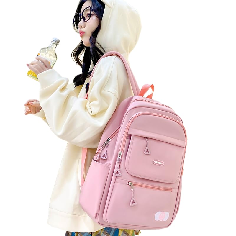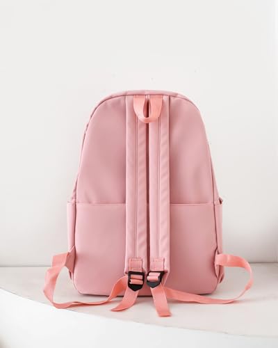 Generic - مجموعة شنطة ظهر جميلة من 4 قطع للمدرسة والمراهقات والفتيات، يومية كبيرة مع دلايات ودبابيس، حافظة اقلام، توت، صغيرة - 5530 - بينك، زهري