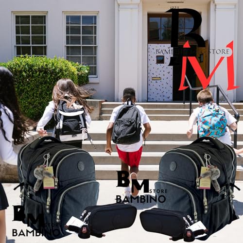 Generic - شنطة ظهر مع مقلمة - 19 انش - شنطة مدرسية مقاومة للماء مع جيب لاب توب وشنطة اقلام رصاص بسحاب مزدوج، مناسبة للمدرسة والكلية والعمل والسفر