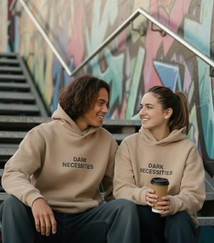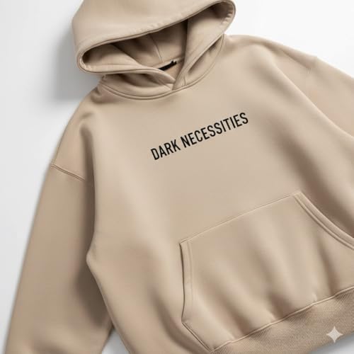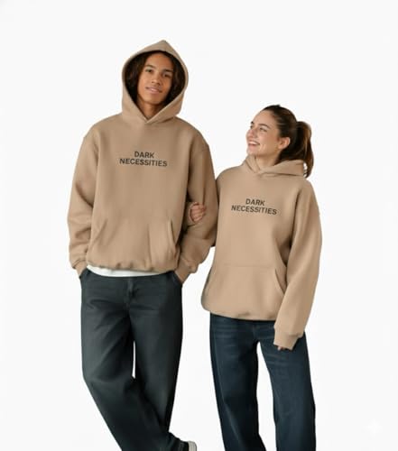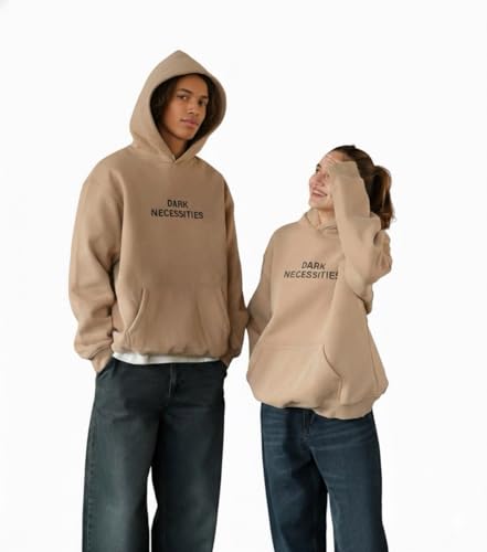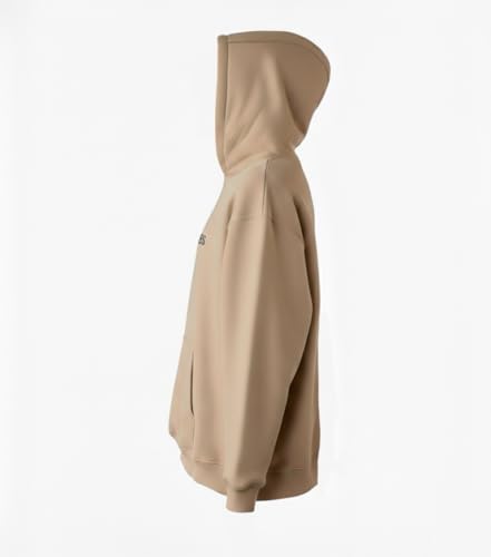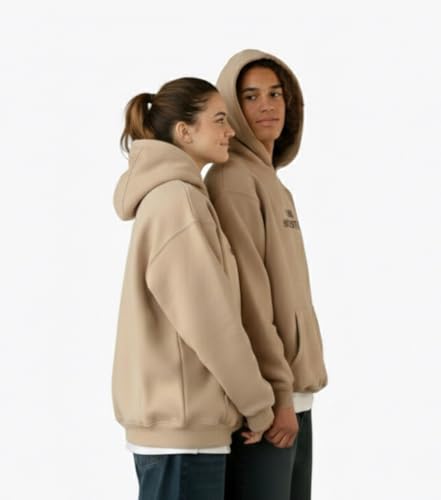 Generic - سويت شيرت بغطاء للرأس للجنسين مصنوع من مزيج قطن ثقيل بقصة مربعة واسعة وأكمام منحنية، ملابس كاجوال للارتداء اليومي من باديز، بيج