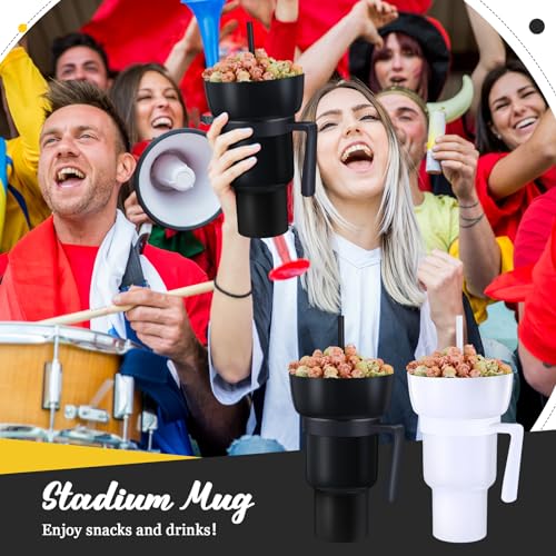 Baderke - كوب ستاديوم 2 في 1 مع بولة من بادريك، سهل الحمل وقابل لإعادة الاستخدام للوجبات الخفيفة والمشروبات بغطاء علوي وشفاطة، عبوة قطعتين، سعة 950 ملليلتر (لون أسود وأبيض)
