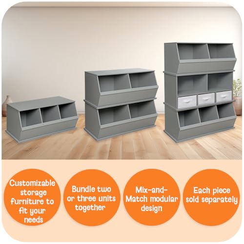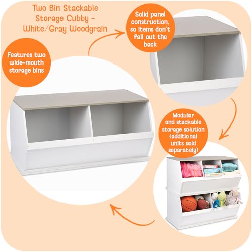 Badger Basket - بادجر باسكت منظم تخزين العاب قابل للتكديس بسنتين - ابيض/رمادي من الخشب الحبيبي