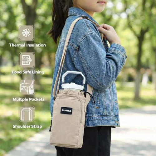 MOMSIV - شنطة حمل طعام معزولة سعة 1 لتر مقاومة للماء ومانعة للتسرب للوجبات الساخنة والباردة والمشروبات، مبرد غداء محمول للعمل والمدرسة والنزهات والسفر (BB-533) (بيج)