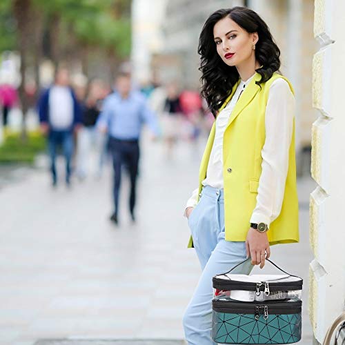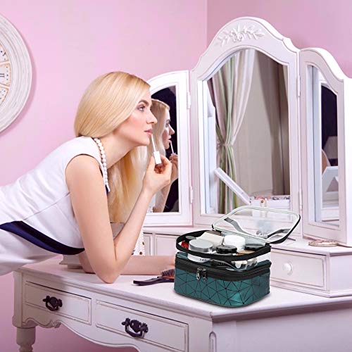 QH-Shop - شنطة مكياج محمولة شفافة مزدوجة الطبقات مقاومة للماء كبيرة لتنظيم المكياج مناسبة للسفر بألوان متعددة من كيو اتش- شوب أخضر