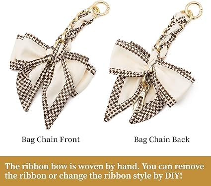 fashion mania - سلسلة تمديد للشنطة مع فيونكة شريط، موسع سلسلة محفظة لتعليقات شنطة كروس، إكسسوارات تزيين شنطة يد للنساء (قاعدة)