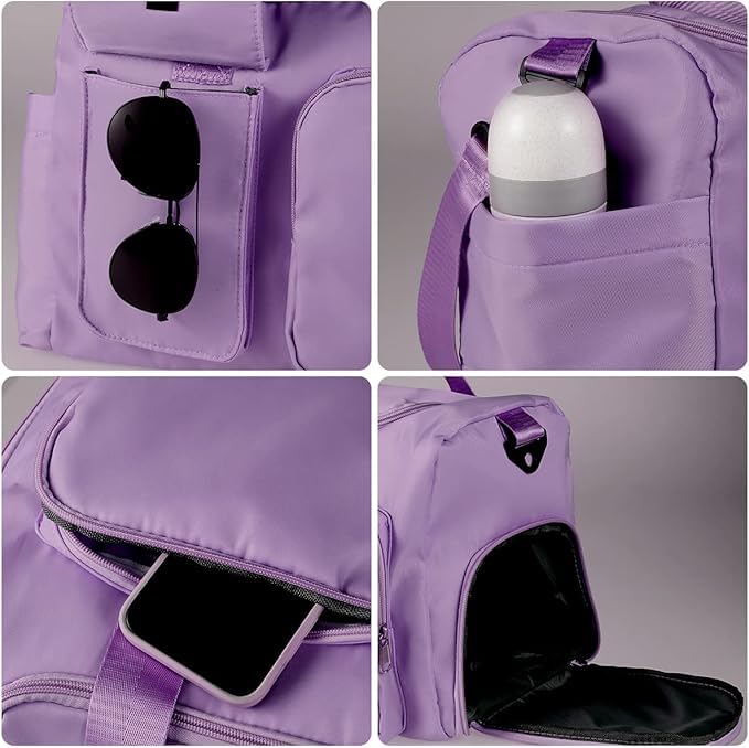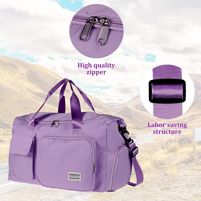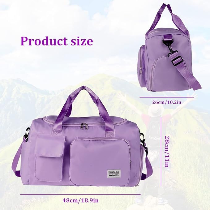 Generic - شنطة جيم للنساء والرجال للسفر مقاومة للماء بسعة كبيرة قابلة للطي مع حمالة كتف، مناسبة للسفر والاستخدام اليومي، مصنوعة من قماش أوكسفورد، مثالية لعطلة نهاية الأسبوع والمبيت (أرجواني)