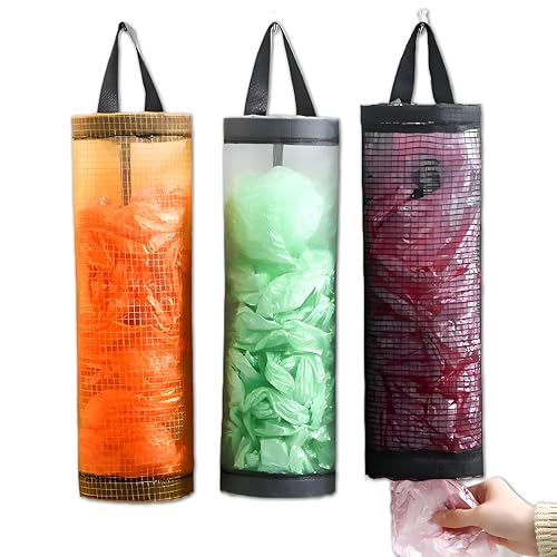 Generic - حامل أكياس - منظم شبكي محمول لأكياس البلاستيك والبقالة وإعادة التدوير بتصميم تعليق مريح (3 قطع)