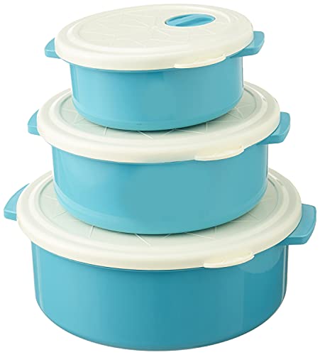 bager - علبة تخزين طعام بلاستيك دائرية من باجر BG-421، 3 قطع - ازرق وابيض