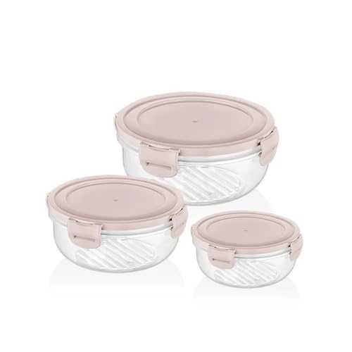 - طقم علب تخزين كوك اند لوك، دائرية بغطاء ملون، بينك، (قياسي)، (400 مل + 800 مل + 1.4 لتر)، 3 قطع