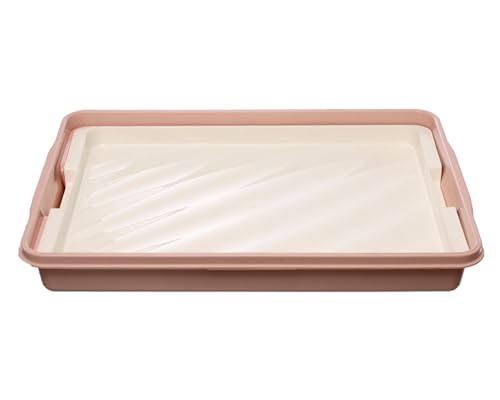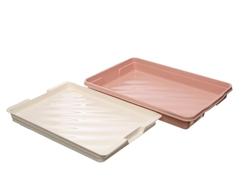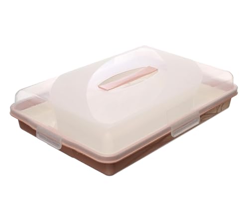 bager - بيجر صندوق بلاستيك مستطيل لتخزين المعجنات والكيك مع غطاء شفاف وصينية داخلية، مقاس L، ابيض/زهري