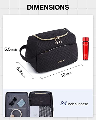 bagsmart - شنطة أدوات الزينة للنساء من باج سمارت مكياج واسعة وأنيقة مستحضرات التجميل سفر لإكسسوارات أسود البوليستر