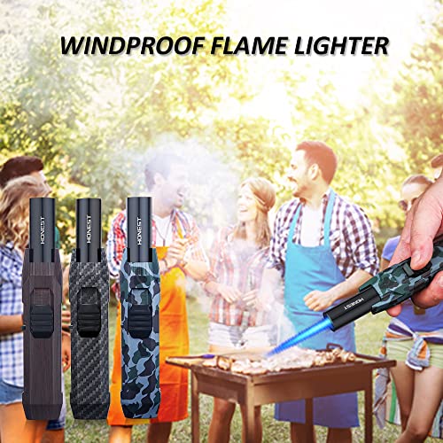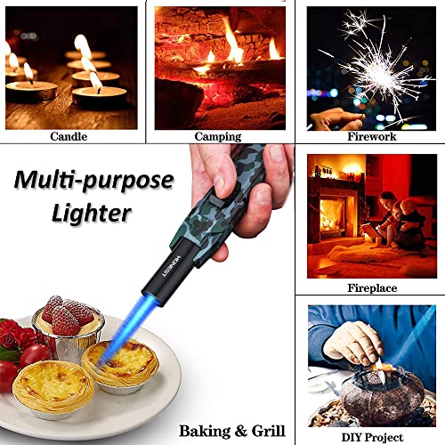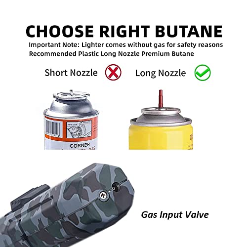 - 【قابلة لإعادة التعبئة وقابلة للتعديل】 يمكن إعادة تعبئة ولاعة غاز البوتان. من السهل ضبط ارتفاع اللهب عن طريق تدوير عجلة الولاعة على الجانب، ولاعة الشعلة هي الخيار الأمثل للمطبخ والخارج.