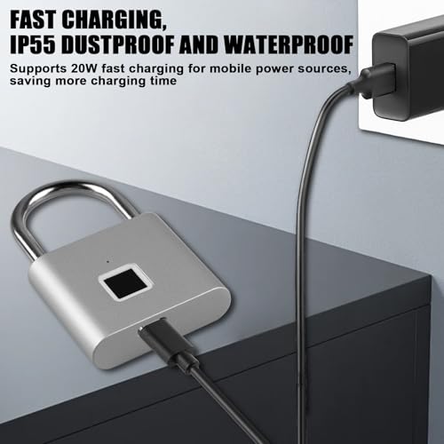 BAIFULAI - قفل ببصمة الإصبع من بايفولاي، مقاوم للعوامل الجوية، شحن USB، لصالة الألعاب الرياضية والأمتعة والمستودعات والخزانة