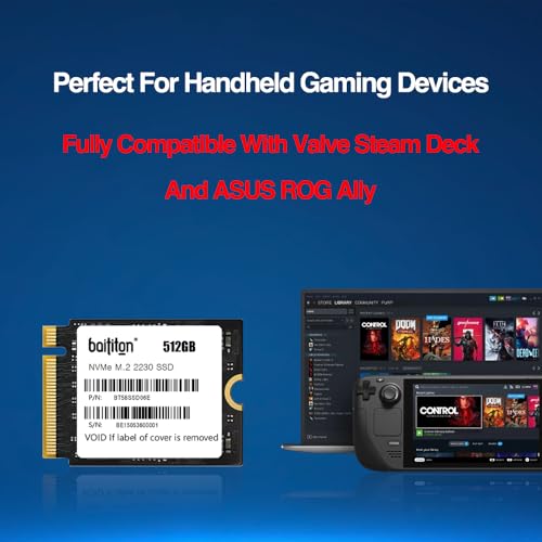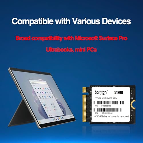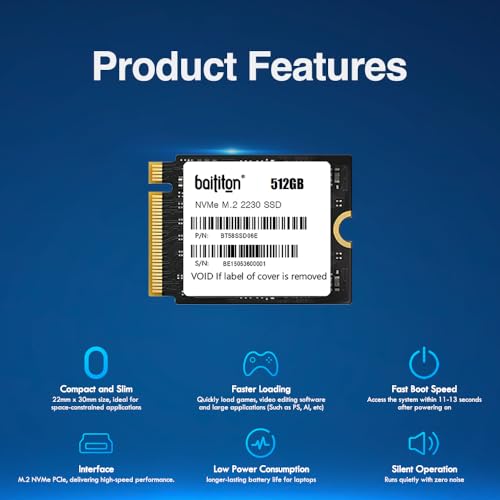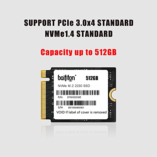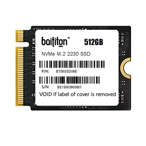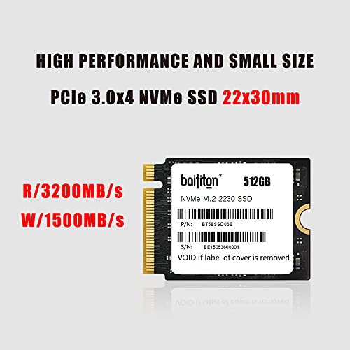 BAITITON - محرك أقراص SSD داخلي M.2 2230 بذاكرة 512GB ومنفذ PCIe الجيل الثالث والرابع وسرعة قراءة 3200 ميجابايت/ثانية، 22 × 30 ملم، متوافق مع ستيم ديك وسيرفس برو وديل واتش بي ولينوفو الترا بوك والتابلت من بايتون