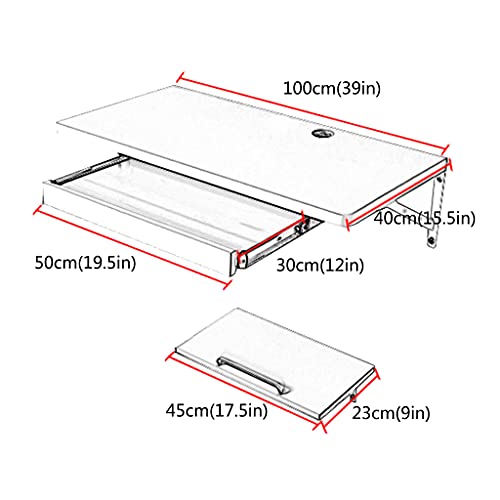 bAIWaNG - مكتب كمبيوتر للمطبخ، طاولة حائط ناعمة ورقيقة، درج كيبورد قابلة للطي، لغرفة النوم من بايوانج، ابيض، 40×100 سم
