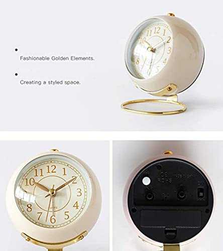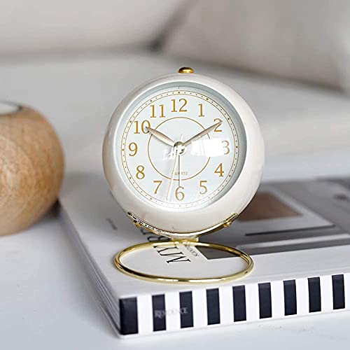BAIYUN - ساعة طاولة صغيرة من بايون، ساعة طاولة بتصميم كلاسيك بعرض أنالوج عقارب وحركة كوارتز مزودة بساعة منبه وإضاءة خلفية لديكور غرفة النوم